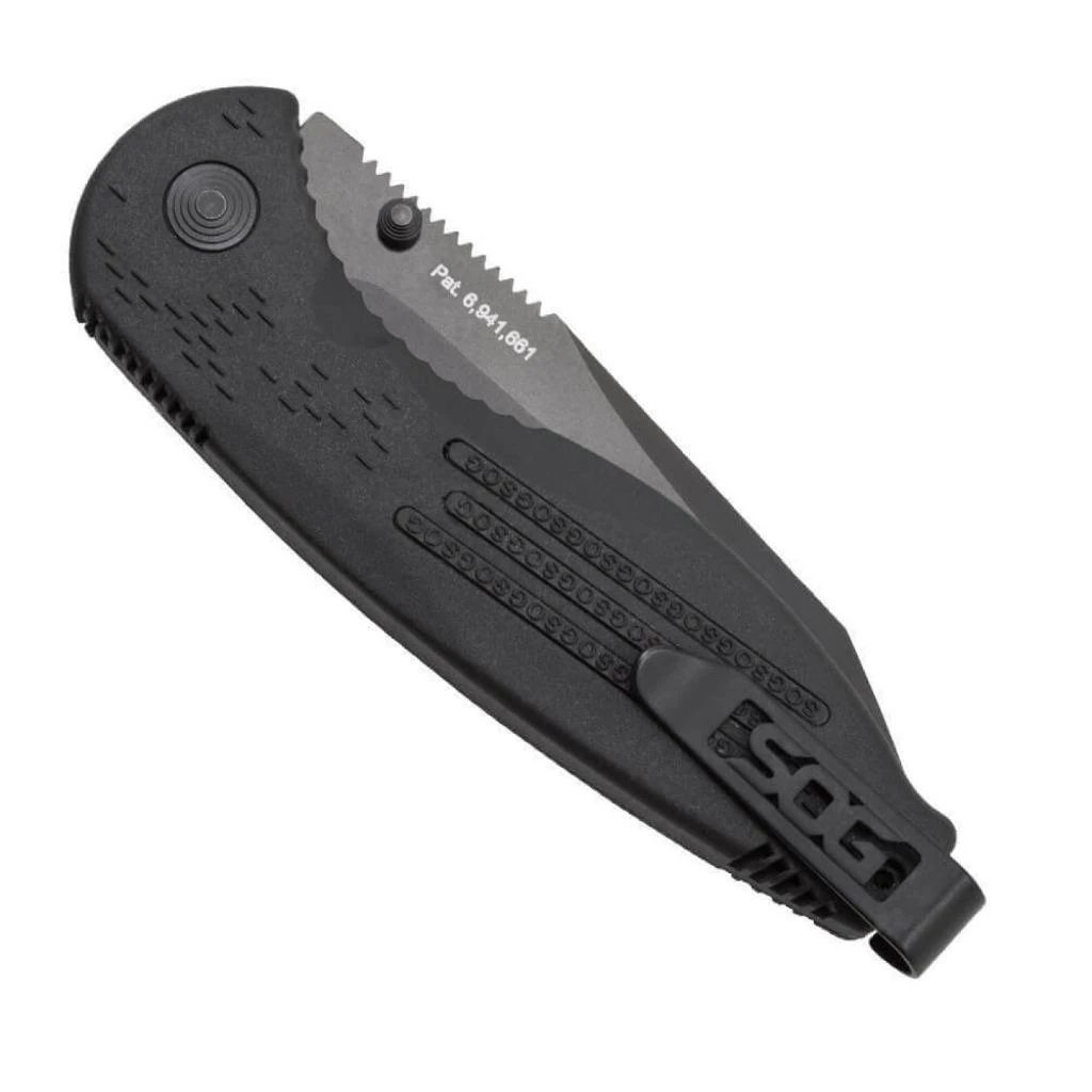 8.25″ overall. 4.75″ partially serrated AUS-8 hardcased black tini tanto blade. Assisted opening. Black glass reinforced nylon handle. Piston lock. Reversible low carry pocket clip.