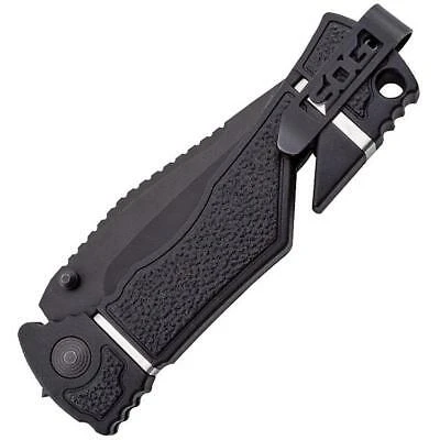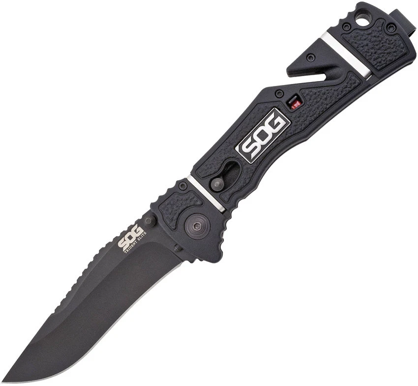 The Trident Elite features SOG’s patented Assisted Technology for quick one-handed opening. The slot cutter built into the handle can cut thin rope, belts, or webbing without opening the blade. The front of the handle has a built-in glass breaker for any situation. The Trident Elite comes with a 3.7-inch blade made of reliable AUS-8 stainless steel and a durable glass-reinforced nylon handle with textured rubber inserts to improve grip.