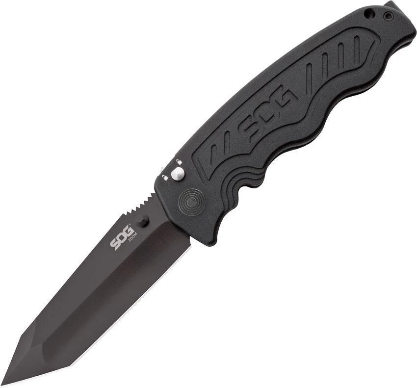 SOG-Tac Compact Automatic AU-XR Lock Black Aluminum Cryo D2 Steel Tanto Partially Serrated 15381057